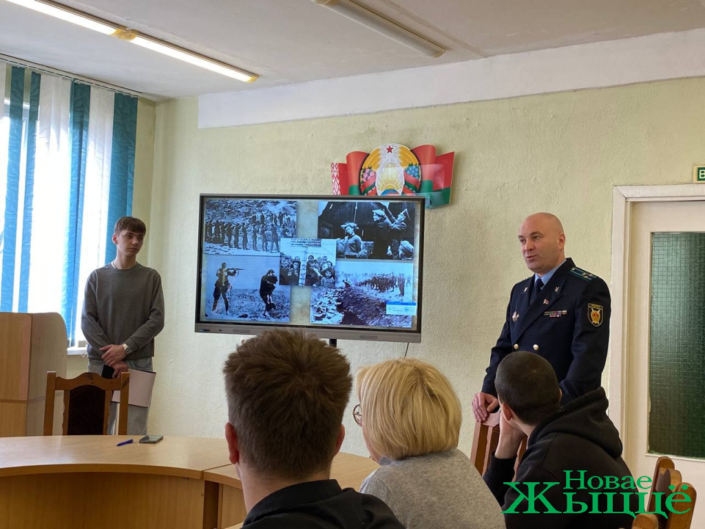 Гость встречи, прокурор Новогрудского района Михаил Валерьевич Разуваев, рассказал о той работе, которую ведет Генеральная прокуратура Республики Беларусь в отношении геноцида белорусского народа в годы войны, акцентировал внимание ребят на том, как важно помнить, что за каждой цифрой потерь стоят человеческие жизни, сломанные судьбы, нереализованные мечты. И наша задача – не просто помнить об этих жертвах, но и извлекать уроки из прошлого, чтобы не допустить повторения подобных трагедий в будущем.
