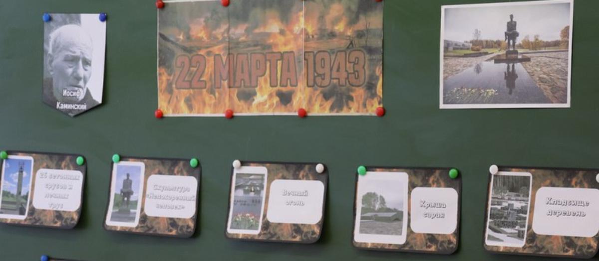 Ребята узнали о деревне Куписк, Отминово, Понемонь, Пудино, Бор и других, которые в годы войны частично повторили судьбу Хатыни. Учащиеся обсуждали факты геноцида, рассматривали карты сожженных деревень региона и документальные свидетельства, которые хранятся в фондах школы. Для современных подростков важно понимать: война – это не только героические сражения, но и невинные жертвы среди стариков, женщин и детей, чья вина была лишь в том, что они жили на своей земле.