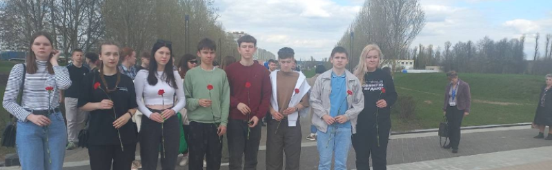 Также учащиеся прошлись по аллее «Дорога смерти», по которой доставляли в лагерь заключенных. Сильные впечатления произвели установленные вдоль дороги гранитные памятники, на которых высечены исторические факты о последствиях нацистской оккупации Беларуси. А рядом стоят высокие сосны как немые свидетели тех страшных дней.