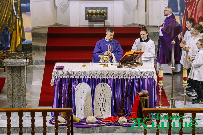 Цырымонія пачалася з урачыстага ўнясення і асвячэння двух абразоў Святога Пятра і Святога Паўла, якія былі падораны касцёлу адным з вядомых мастакоў. У хуткім часе іконы зоймуць сваё ганаровае месца ў бакавых нішах галоўнага алтара.