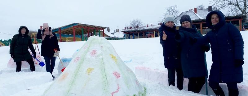 Прекрасная возможность для педагогов воспитывать детей играя и с большой пользой! Проявить фантазию в такие снежные дни и показать детям всю радость, которую доставляет труд он построек из снега, зарядится хорошим настроением, может каждый желающий, главное, не упустить момент!