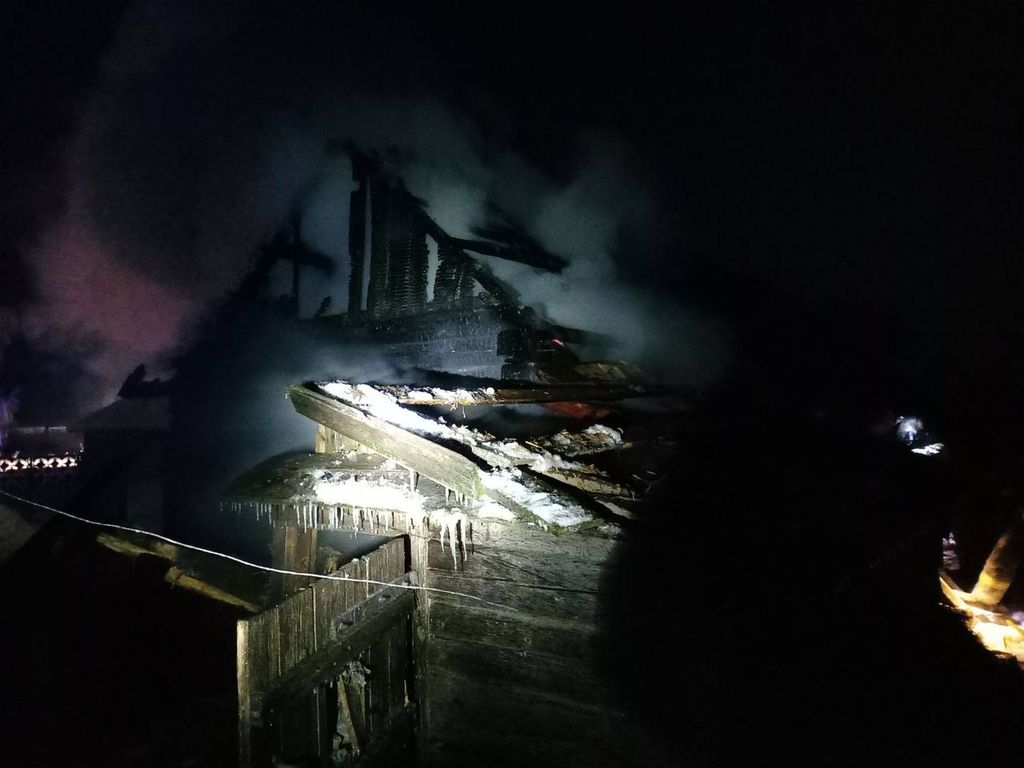 Спасатели ликвидировали пожар. Огонь успел уничтожить кровлю и перекрытие, повредил стены. По одной из версий, к случившемуся могла привести оставленная около хозяйственной постройки горячая зола.