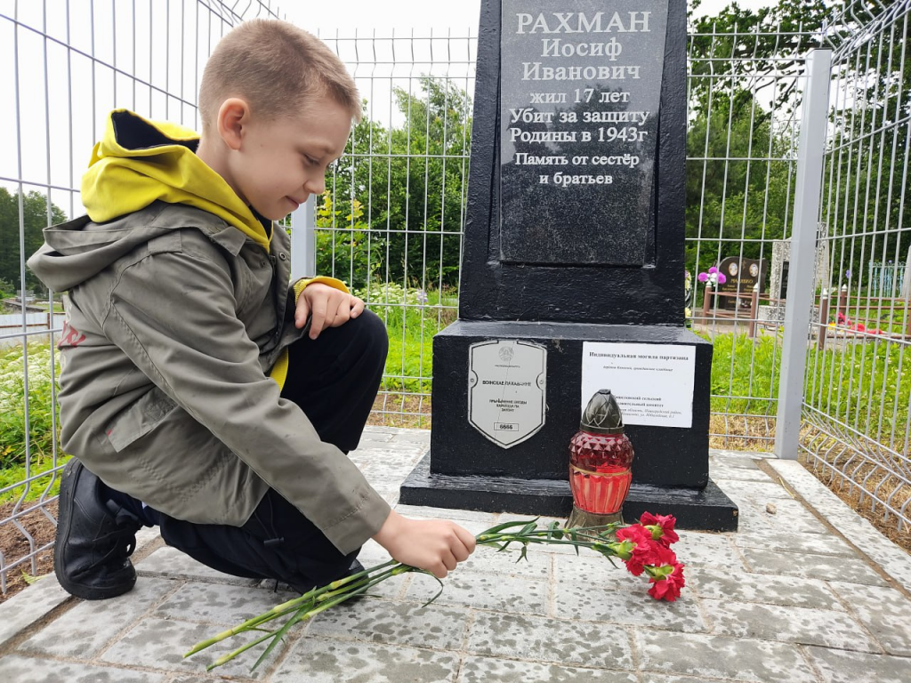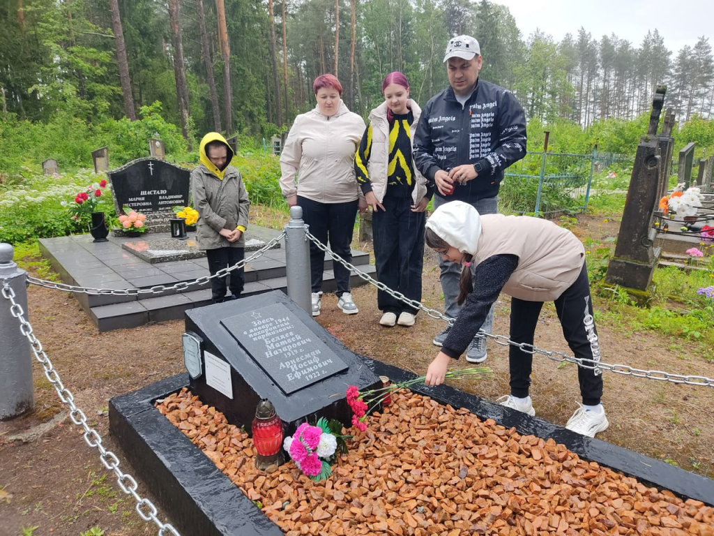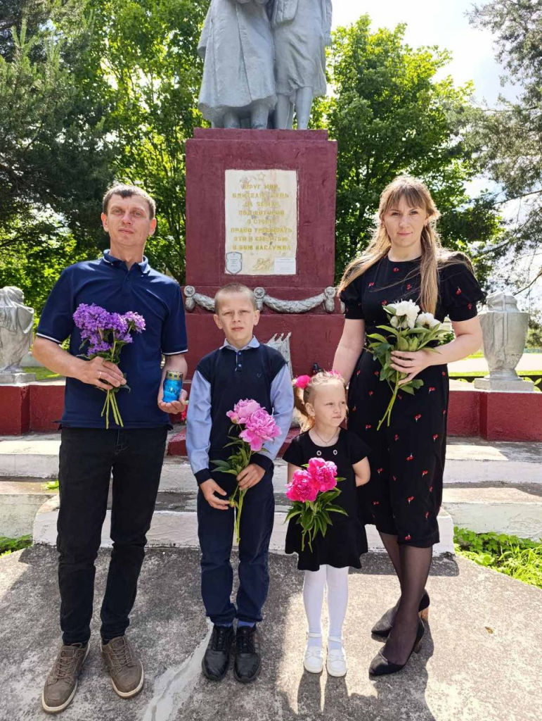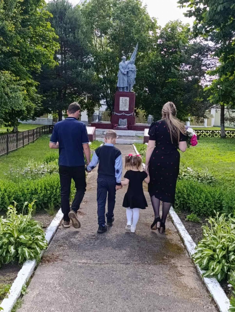 Минутой молчания и возложением цветов Александр и Наталия вместе с детьми почтили память воинов и мирных жителей, отдавших свои жизни в годы Великой Отечественной войны у памятников в д.Осово и д.Каменка.
